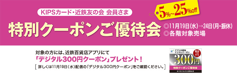 特別クーポンご優待会[11月19日(水)→24日(月・振休)/各階対象売場]