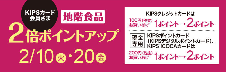 地階食品 KIPSカード会員さま 2倍ポイントアップ[2月10日(火)・20日(金)]