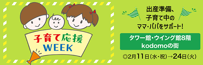 子育て応援WEEK[2月11日(水・祝)→24日(火)/タワー館・ウイング館8階kodomoの街]