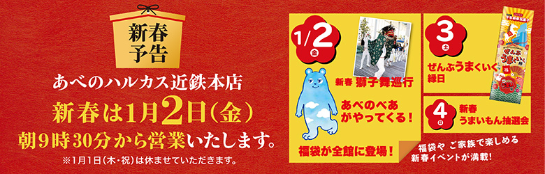 • ■1月2日(金)は新春初売り 地階~11階:午前9時30分開店、午後7時閉店