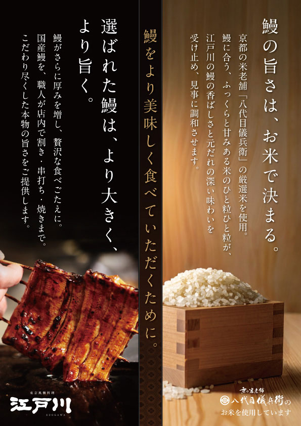 江戸川では、「鰻」と「お米」にこだわっています!!