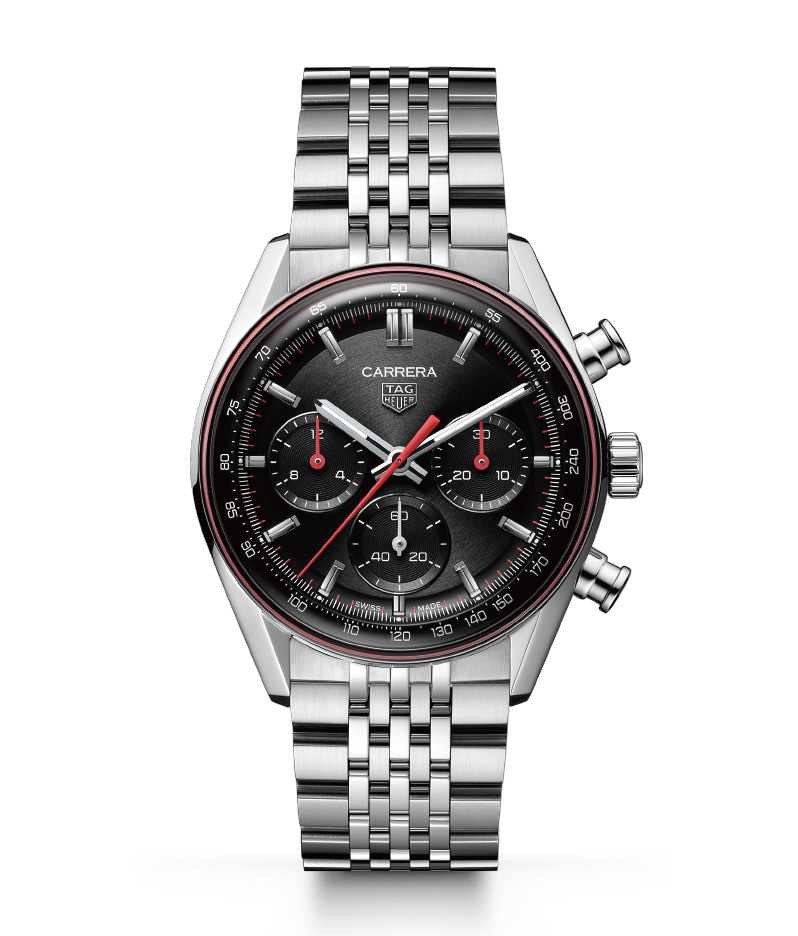 印象的なブラックダイヤルに繊細なレッドの外周リングがモーターレーシングのDNAを体現する、ダイナミックで挑戦的な41㎜のタグ・ホイヤー カレラ クロノグラフ。精度とコントラストを大胆に解釈し、モータースポーツからのタイムレスなヘリテージを現代的な感性でシャープに再構築しています。約80時間のパワーリザーブを誇る自社製キャリバー TH20-01を搭載しています。