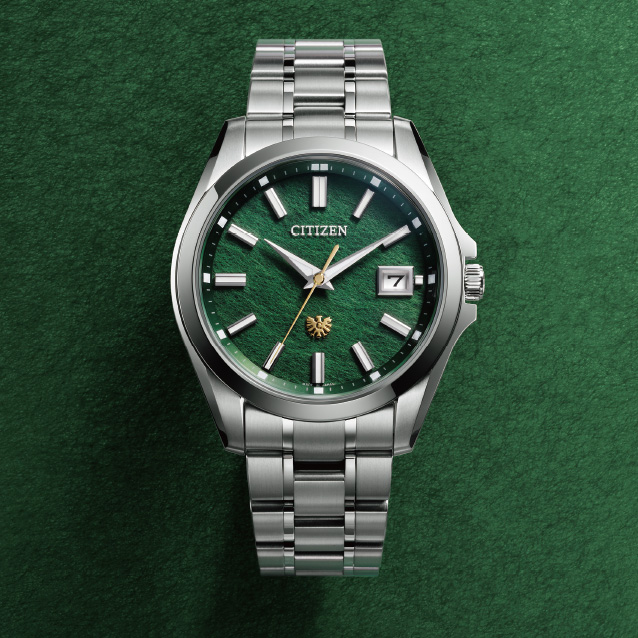 古くから自然や生命の象徴として親しまれた美しい緑が、 藍染と伊吹刈安の融合によって、現代の時計に顕現します。 美しい色調、和紙の風合い、審美性をさらに高めたザ・シチズンが誕生しました。