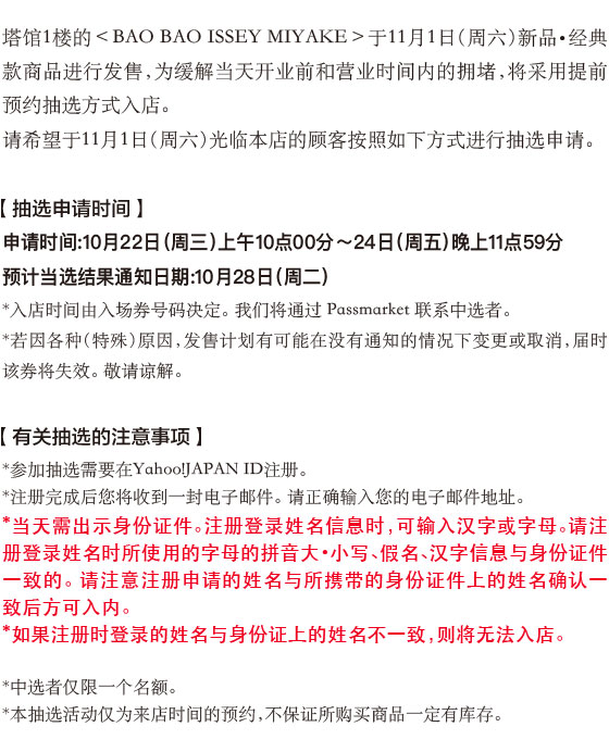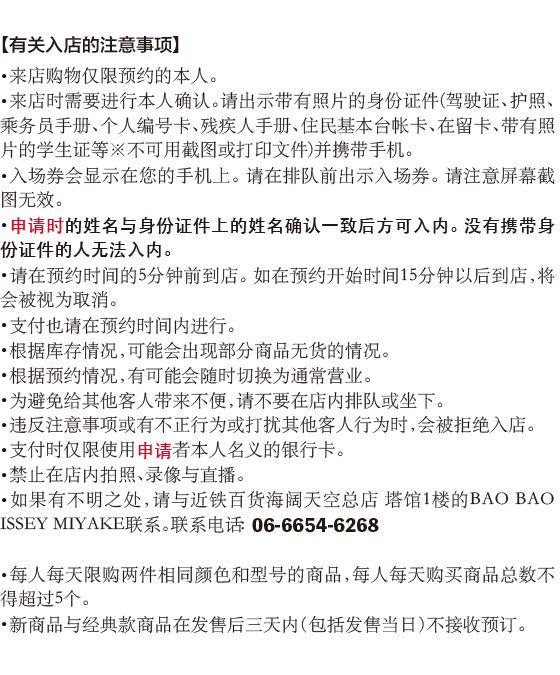 〈BAO BAO ISSEY MIYAKE〉 11月1日(周六) 新品・经典款商品发售 来店抽选的通知