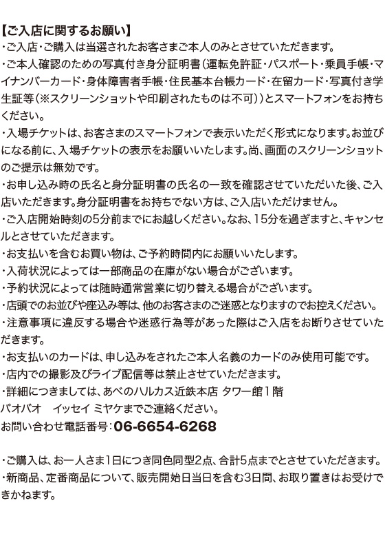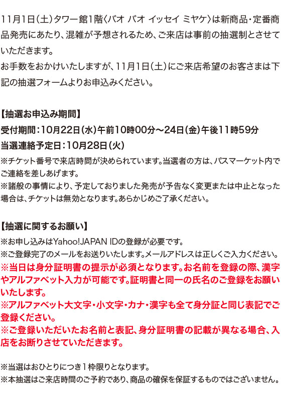 〈BAO BAO ISSEY MIYAKE〉 11月1日(周六) 新品・经典款商品发售 来店抽选的通知
