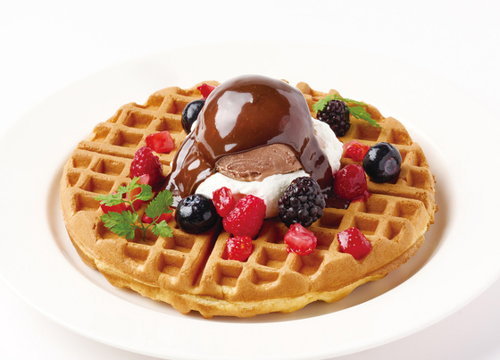 Dolce Vitaのチョコレートアイスに、クーベルチュールチョコレートのソースをかけた濃厚でリッチな季節のワッフルです。
