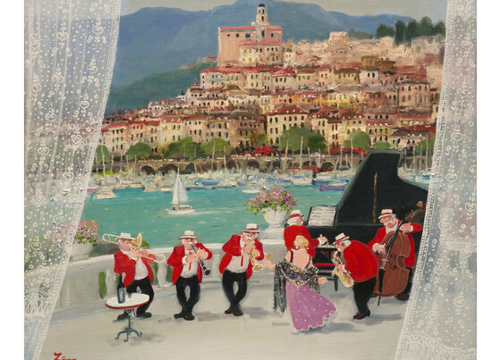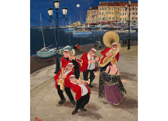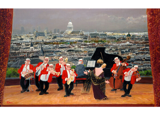 作品に描かれている、音楽を奏で踊る人物たちは、現実には存在していません。田中氏が憧れのパリを想う時、浮かぶ光景、もしくは誰かの中にあるかもしれない風景を、優しく暖かい色彩で表現しておられます。陽気な音楽や人々の笑い声が聞こえてきそうな楽しい作品の数々を一堂に展覧いたします。