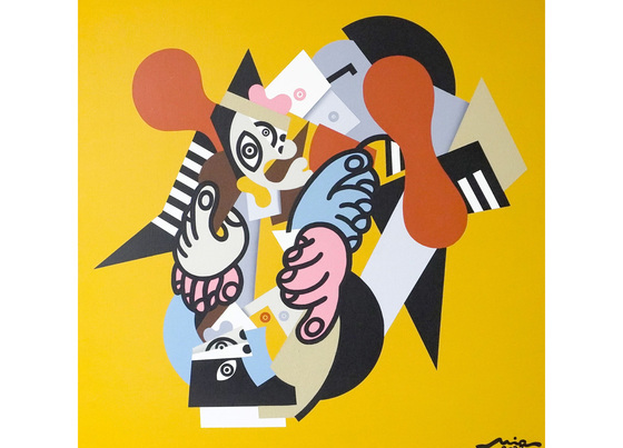 表現の核は、プロレスという身体芸術と「キュビスム」の融合にある。360度どこから見ても成立するリング上の戦い。その多角的な視点を一枚の画面に再構築することで、写真や映像では捉えきれない多層的な魅力を描き出しています。