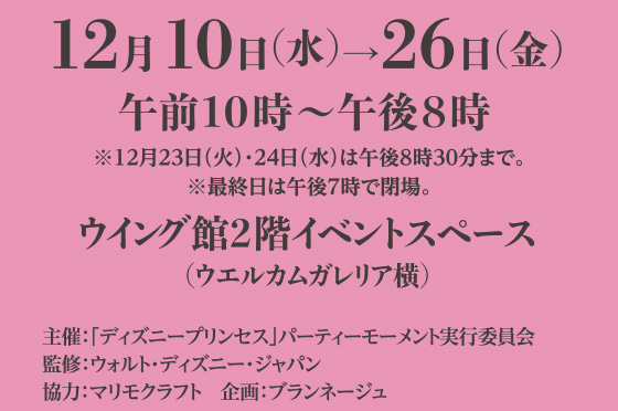 ディズニープリンセス パーティーモーメント[12月10日(水)→26日(金)/ウイング館2階イベントスペース(ウエルカムガレリア横)]
