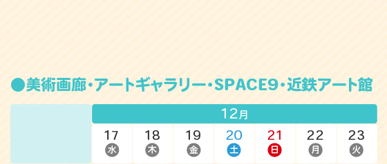 • ■12月30日(火):地階 午前9時15分→午後8時