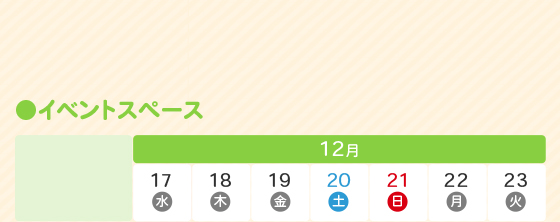 • ■12月23日(火)・24日(水): 地2階~2階 午前10時→午後8時30分