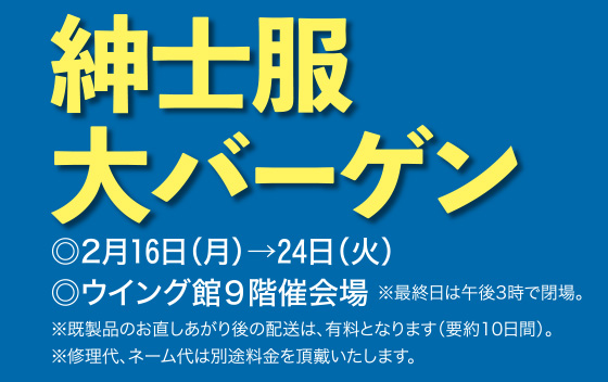 - 紳士服大バーゲン[2月16日(月)→24日(火)/ウイング館9階催会場]