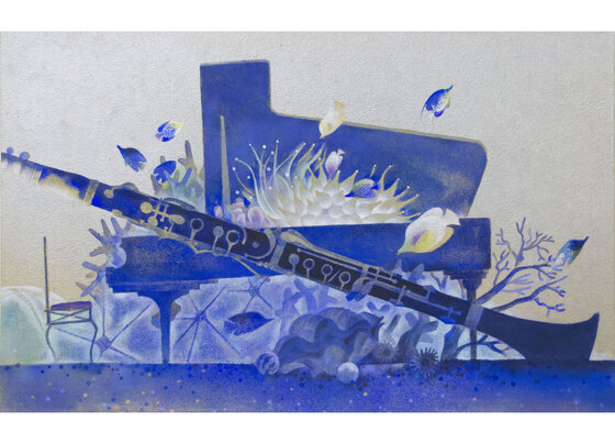 本展はライフワーク的に描かれ続けている女性像のシリーズを中心に「現代花鳥画」とも言える月の器シリーズ、マーブリング技法を駆使した「月」シリーズなど多彩な作品を展開いたします。