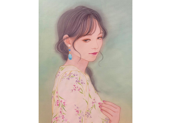 東京藝術大学に学び、絹に描くことに魅せられた松原亜実先生は、日本画の伝統的な技法を駆使して優美な女性像や花鳥画を描いておられます。