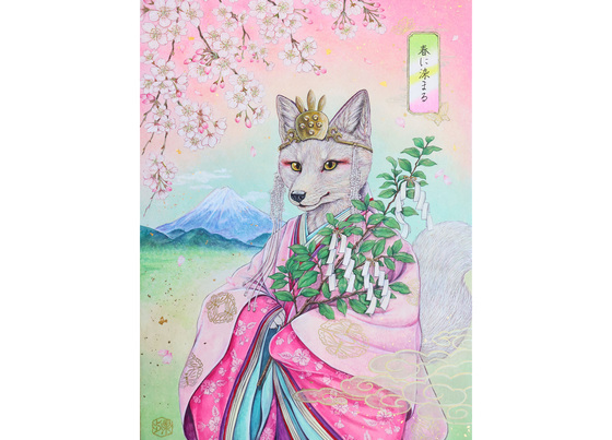 日本古来の神さまのお使い「白狐」たちを描く西川果歩氏。