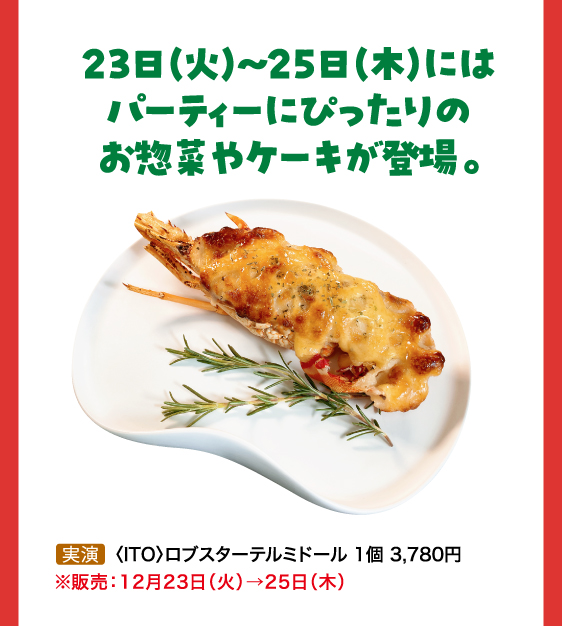 - ■12月23日(火)・24日(水): 地2階~2階 午前10時→午後8時30分