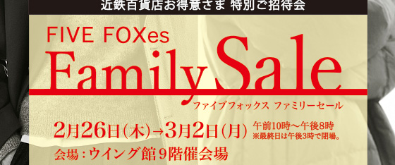 FIVE FOXes Family Sale ファイブフォックス ファミリーセール[2月26日(木)→3月2日(月)/ウイング館9階催会場]