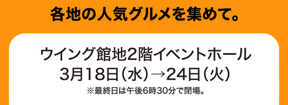 諸国グルメめぐり[3月18日(水)→24日(火)/ウイング館地2階イベントホール]