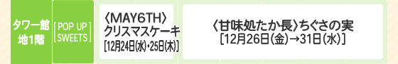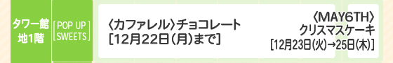 • ■12月23日(火)・24日(水): 地2階~2階 午前10時→午後8時30分
