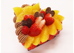 甘酸っぱいいちごとオレンジを、チョコレートクリーム、ハート型のチョコレートとあわせて飾り付けました。...