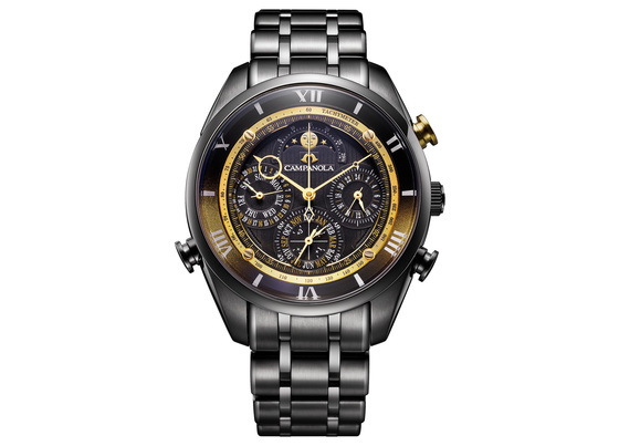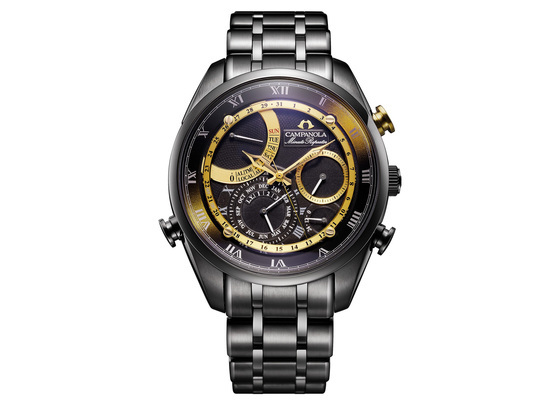 『美しい音で時を報せるミニッツリピーター。宇宙をあらわしたオールブラックの世界観に、音の拡がりをゴールドのリングで表現しました。』
