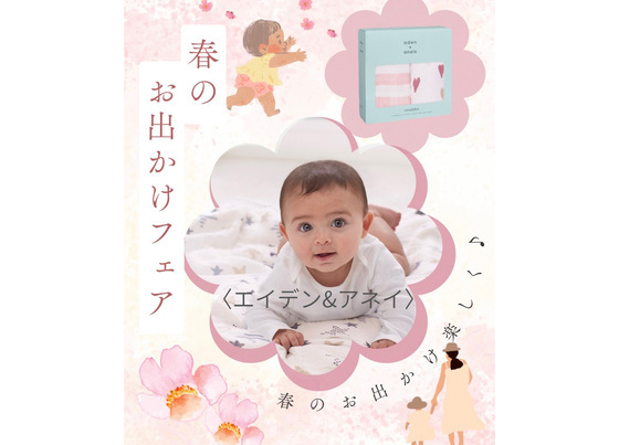 通気性が良く、適度な保温性もある〈エイデンアンドアネイ〉のおくるみは、2月の寒暖差対策にもぴったり。