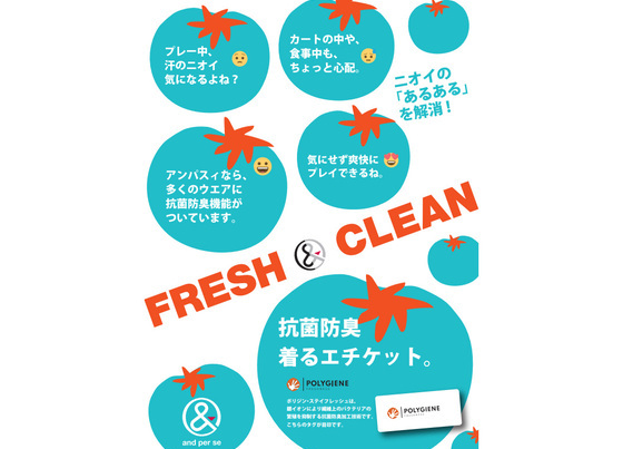 〈アンパスィ〉の最新ウエアは、高度な抗菌防臭加工技術「ポリジン・ステイフレッシュ」を採用しています。