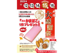 期間中、1,512円以上お買いあげの方に、ミニかまぼこ1枚をプレゼント!