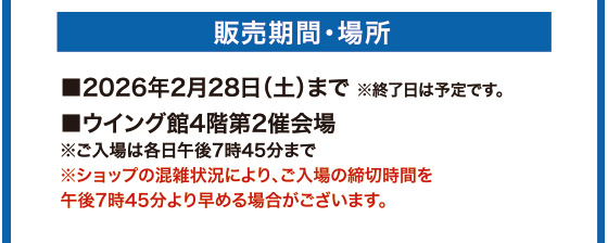 - ■12月23日(火)・24日(水): 地2階~2階 午前10時→午後8時30分