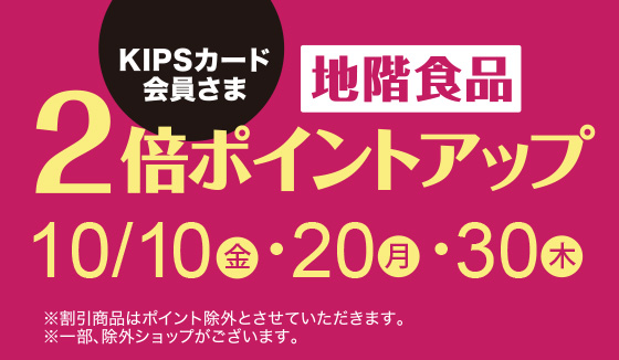 - 地階食品 KIPSカード会員様 2倍ポイントアップ[10月10日(金)・20日(月)・30日(木)]