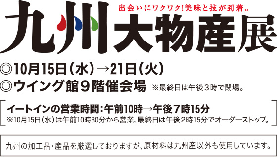 九州大物産展[10月15日(水)→21日(火)/ウイング館9階催会場]