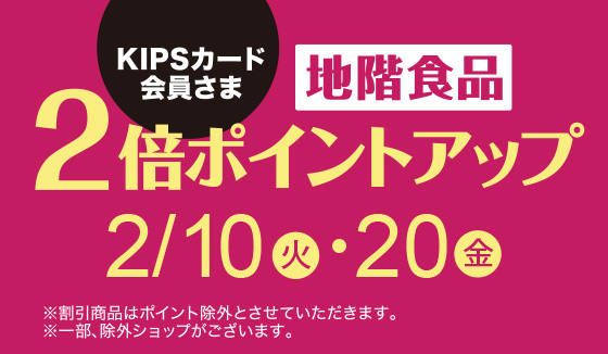 - 地階食品 KIPSカード会員さま 2倍ポイントアップ[2月10日(火)・20日(金)]