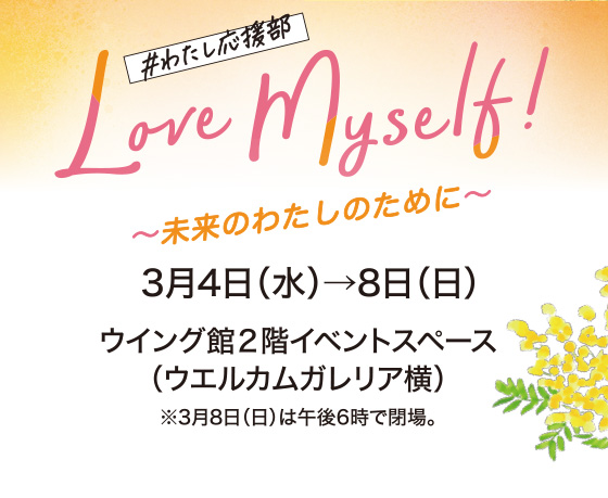 - Love Myself! 〜未来のわたしのために〜[3月4日(水)→8日(日)/ウイング館2階イベントスペース(ウエルカムガレリア横)・2階ウエルカムガレリア]