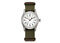 38㎜のつや消しのステンレススチール製ケース、3針表示、ホワイトのダイヤル、オールドラジウムカラーのスーパールミノバ®を塗布した三角形のインデックス、耐久性に優れたNATOストラップ。
