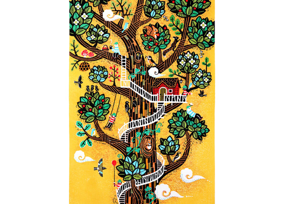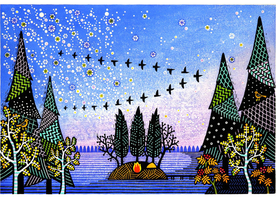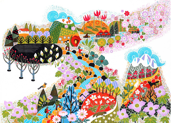 和紙とばれんで創りだされる温かな色彩は、鳥たちのさえずりや木々のざわめき、土の香りや森の空気を優しく伝えてくれます。