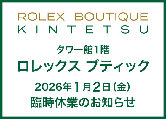 タワー館1階「ロレックス ブティック」は、1月2日(金) 臨時休業させていただきます。