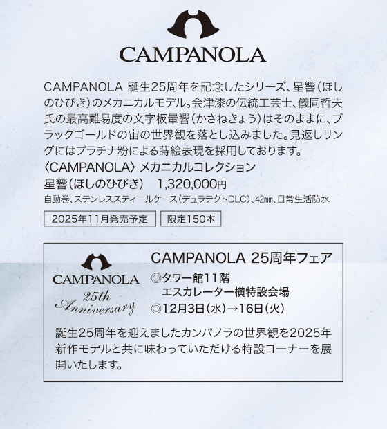 ワールド ウオッチ フェア[11月12日(水)→12月23日(火)/タワー館11階時計サロン、ウイング館1階オメガブティック]