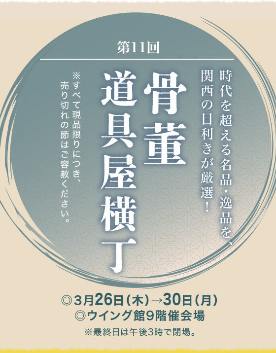 第11回 骨董道具屋横丁[3月26日(木)→30日(月)/ウイング館9階催会場]