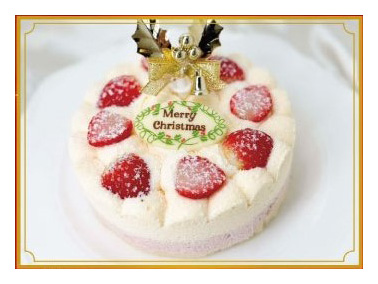 マスカルポーネのレアチーズに苺のムースを合わせた、甘酸っぱい味わいのクリスマスケーキです。