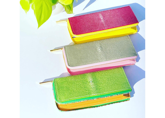 〈BAHARI(バハリ)〉はスワヒリ語で「海」を意味し“海の宝石”と呼ばれるほど美しい革、ガルーシャ(エイ革)。