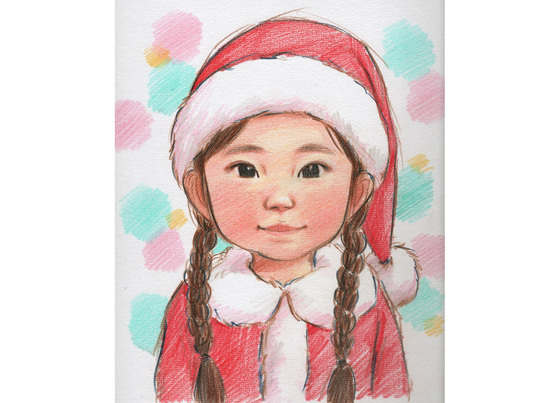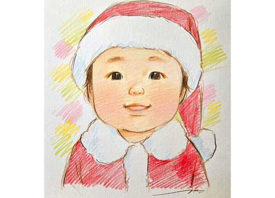 ご希望に応じて似顔絵の服装をサンタの衣装に変えることもできます。