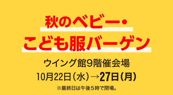 - 秋のベビー・こども服バーゲン[10月22日(水)→27日(月)/ウイング館9階催会場]
