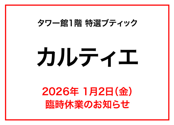 ※Watch Salon <Cartier counter> on 11th Floor of Tower Building will open as usual."