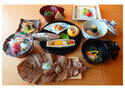 八寸、煮物椀、造里、焼肴、焚合、〆の蕎麦と押し寿司、デザートのセットです。