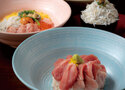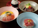 豪快盛りの中トロ丼、こぼれシラス丼のほか、鶏唐揚げ定食、炭焼きカツオなどもオススメ。