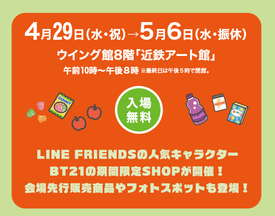 期間限定SHOP BT21 market[4月29日(水・祝)→5月6日(水・振休)/ウイング館8階「近鉄アート館」]