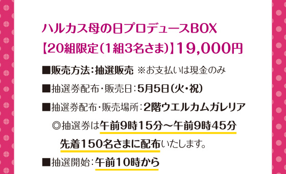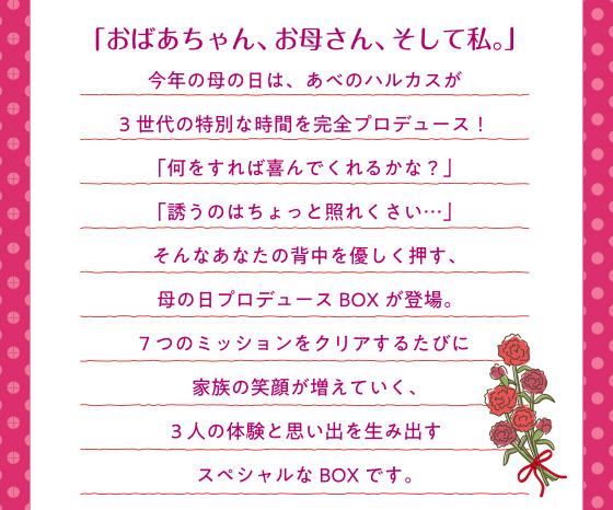 ハルカス母の日プロデュースBOX 数量限定抽選販売[5月5日(火・祝)/2階ウエルカムガレリア]