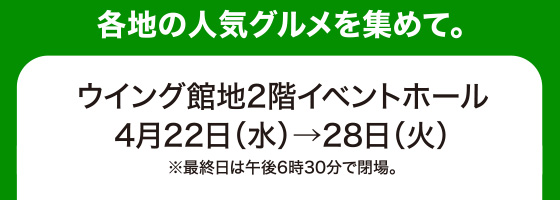 諸国うまいものフェア 第2弾[4月22日(水)→28日(火)/ウイング館地2階イベントホール]