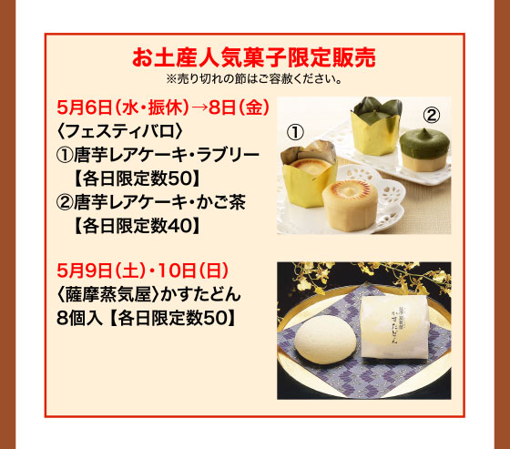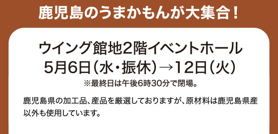 うんまか薩摩!鹿児島物産展[5月6日(水・振休)→12日(火)/ウイング館地2階イベントホール]