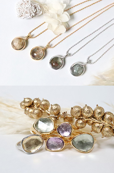 風景を身につけるをテーマとして、inclusion(内包物)を含む水晶をメインにjewelryを使用し制作しています。時を経て自然に形成されたinclusionの世界、ganeuを通じて興味を持っていただければ幸いです。